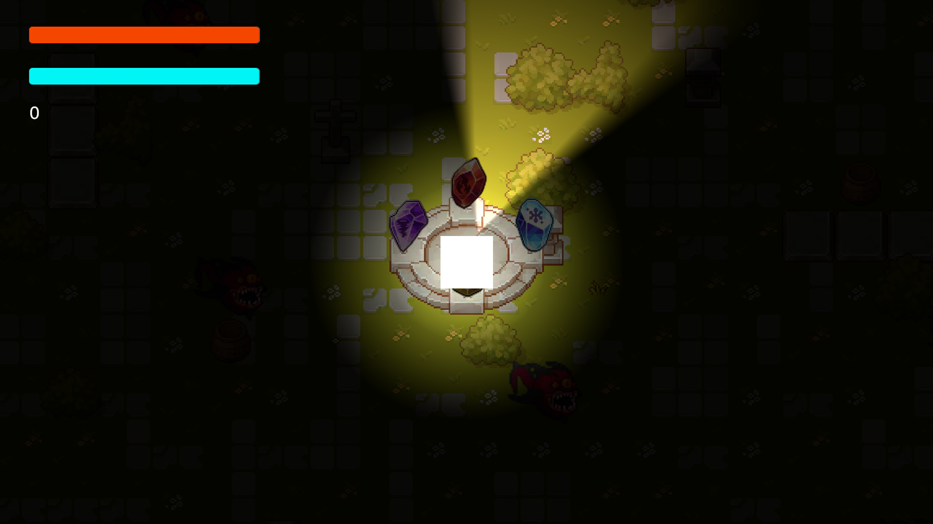 Collect 4 elemental fragments scattered across the map, then reach the exit portal to win.